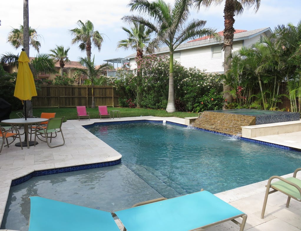 Lazy Days Beach House is just 200 feet from direct access to the beach. It sits on a double lot on a street that ends directly onto the north end of South Padre Island.